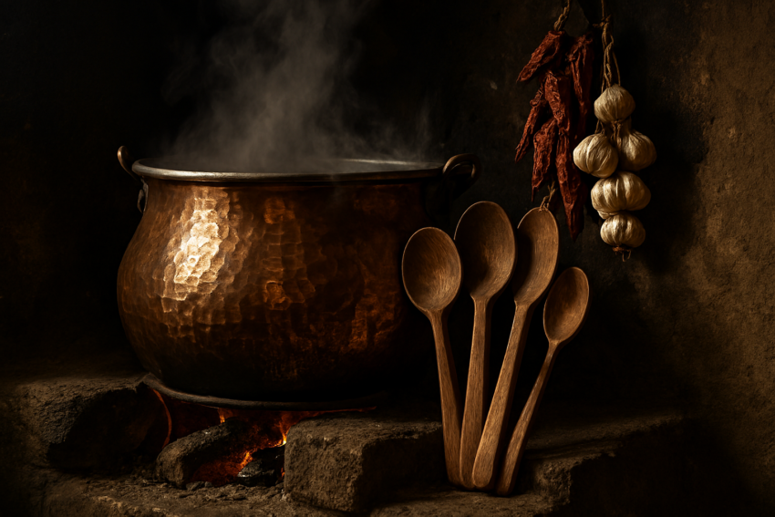 🇹🇷 Türkçe | Tahta Kaşıktan Bakır Kazana: Mutfaktaki Kadim Miras Modern mutfakların paslanmaz çelik yüzeyleri ve plastik gereçleri ortaya çıkmadan çok önce, yemekler doğanın kendi malzemeleriyle hazırlanırdı. Odun ateşinin üzerinde ağır ağır kaynayan bir bakır kazan, mutfağın kalbinde yer alırdı. O kazan yalnızca bir kap değil, evin bereketinin ve sabrının simgesiydi. Tahta kaşıkların tencereye değdiğinde…