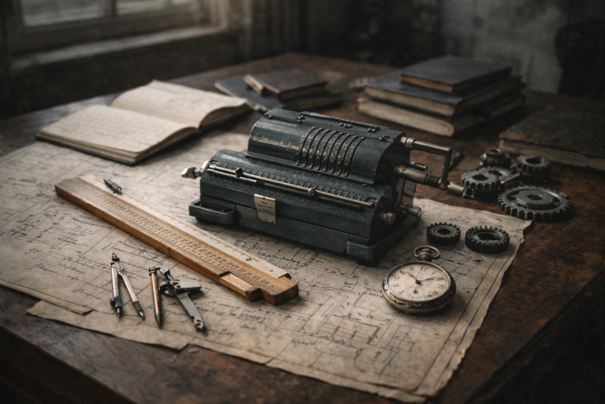 Imagine an engineering office in the 1960s. Wooden desks are covered with technical drawings, thick notebooks, and a heavy mechanical calculator. When the handle is turned, gears inside begin to move with a metallic rhythm. Each calculation sounds like a small mechanical orchestra. These devices, which might seem simple today, were once the essential instruments of scientific and industrial progress.