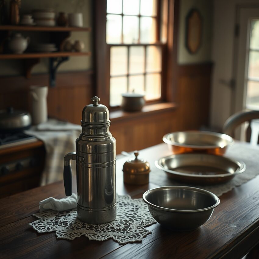 O brilho renovado na limpeza de feriado não era acaso. Preparar o feriado não era só arrumar para receber convidados; era atualizar a memória da casa. Enquanto toalhas rendadas eram colocadas e bandejas de cobre polidas, o termos recebia o mesmo cuidado. Crianças ouviam frases como “isso era da sua avó” e aprendiam que valor nem sempre vem de preço, mas de continuidade. Um utensílio comum virava elo entre gerações.