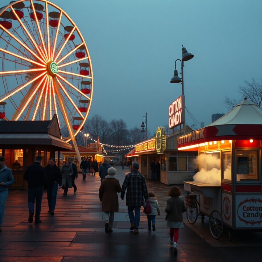 Nas primeiras noites de primavera, os parques de diversão montados nas bordas das cidades antigas transformavam o cansaço do dia em outra cor. O ar ainda vinha levemente fresco, o chão cheirava a terra recém-molhada, e o algodão-doce subia como uma névoa fina na luz do entardecer. De longe, a roda-gigante parecia simples, mas quando as lâmpadas acendiam, virava um portal de conto de fadas para as crianças do bairro. Aquelas horas não eram só lazer; eram uma passagem do ritmo comum para uma imaginação coletiva.