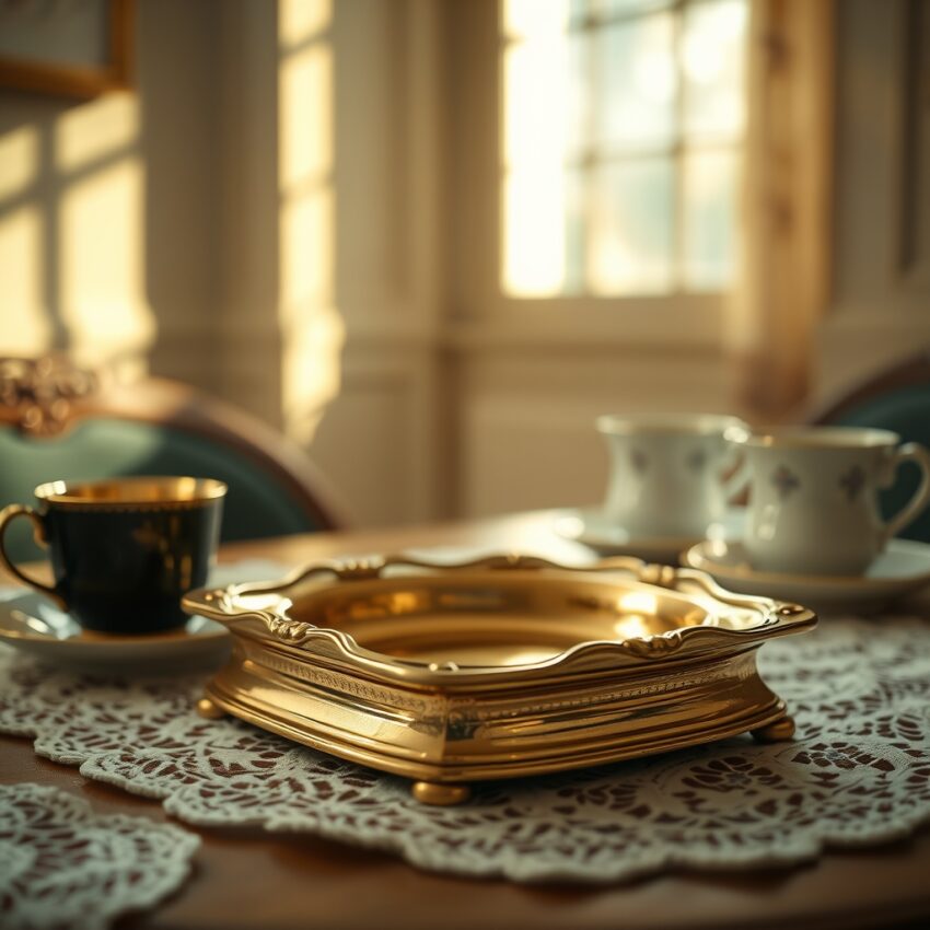 Há objetos que não falam, mas contam sozinhos a etiqueta, a organização da casa e o gosto de uma época. O cinzeiro de latão é um desses narradores silenciosos. No canto da mesa da sala, ao lado das xícaras de café, ou no centro da mesa da varanda, essa peça pesada e brilhante não era apenas um recipiente funcional. Ela indicava o estilo do anfitrião, a forma de receber visitas e as preferências estéticas daquele período. Quando o vapor do café da tarde subia, a luz atravessando a cortina batia no latão e dava ao ambiente uma sensação de composição mais cuidadosa.