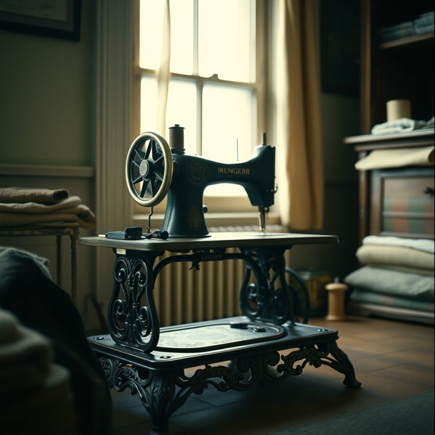 The answer to how they reflected the taste of an era lies partly in the place they occupied in the house. The sewing machine was often kept not as a rough working instrument forgotten in the kitchen, but as a respectable visible object in a proper corner. Around it one did more than hem cloth or make repairs. One also enacted the household’s sense of order. Fabric was measured, soap marks were drawn, spools of thread were lined up in the drawer, and then the whole mechanism came alive through the rhythmic motion of the feet below. The image suggested that labor itself was part of good form. The elegance of the iron base did not reduce domestic work to something ordinary. It gave that work a visible dignity.