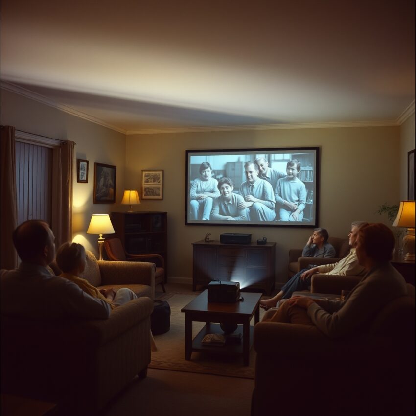 After dinner was cleared, curtains were drawn, the coffee table was emptied, and a pale wall surface was prepared. A quiet urgency spread through the living room, because the slide projector would start soon. Carefully removed from their box, the small frames carried years of travel, weddings, picnics, and seemingly ordinary moments filled with meaning. In those minutes, the home felt as serious as a cinema hall and as warm as a family album.