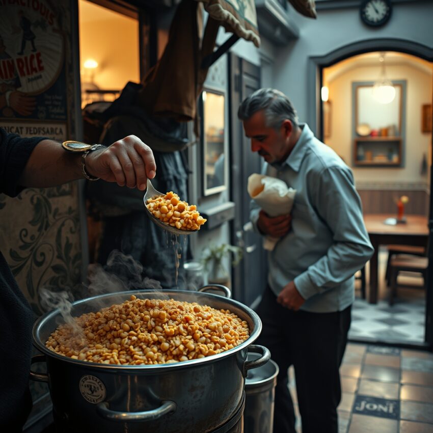 Na cidade antiga, o fim da tarde frequentemente era dominado por um único aroma: arroz com grão-de-bico quente, amanteigado e levemente temperado. Cada vez que a tampa do caldeirão da rua se abria, o vapor não despertava só fome; ajustava o relógio do bairro. Quando o pacote chegava em casa, o cheiro já era percebido na escada do prédio. Em poucos minutos ele tomava todos os cômodos e chamava para a mesa até quem estava distraído. Por isso, esse prato não era apenas comida: era convite coletivo.